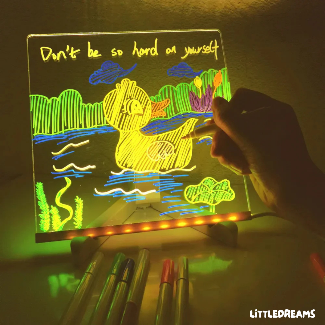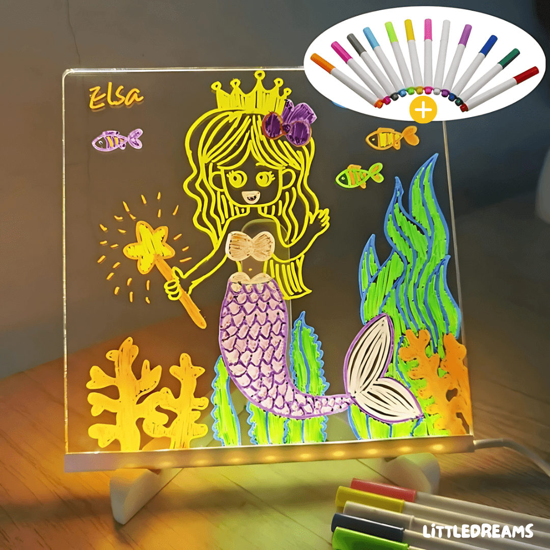 Every child dreams of creating something magical – and with the DreamBoard, their drawings truly shine. From glowing animals to secret messages, each design lights up in vibrant colours, turning simple doodles into masterpieces.