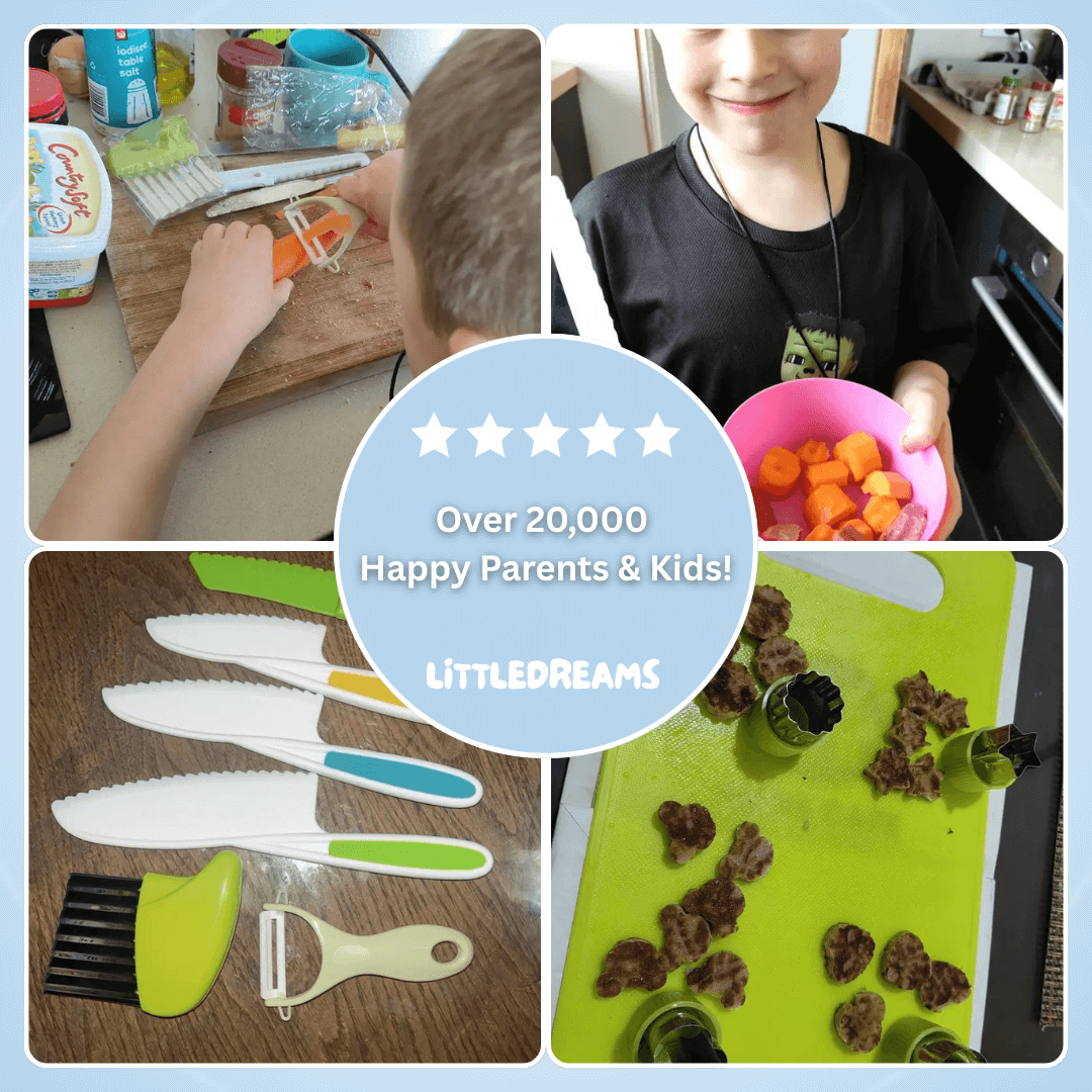 From carrots to cucumbers to sandwiches – little hands can now safely cut, peel, and play like real chefs.